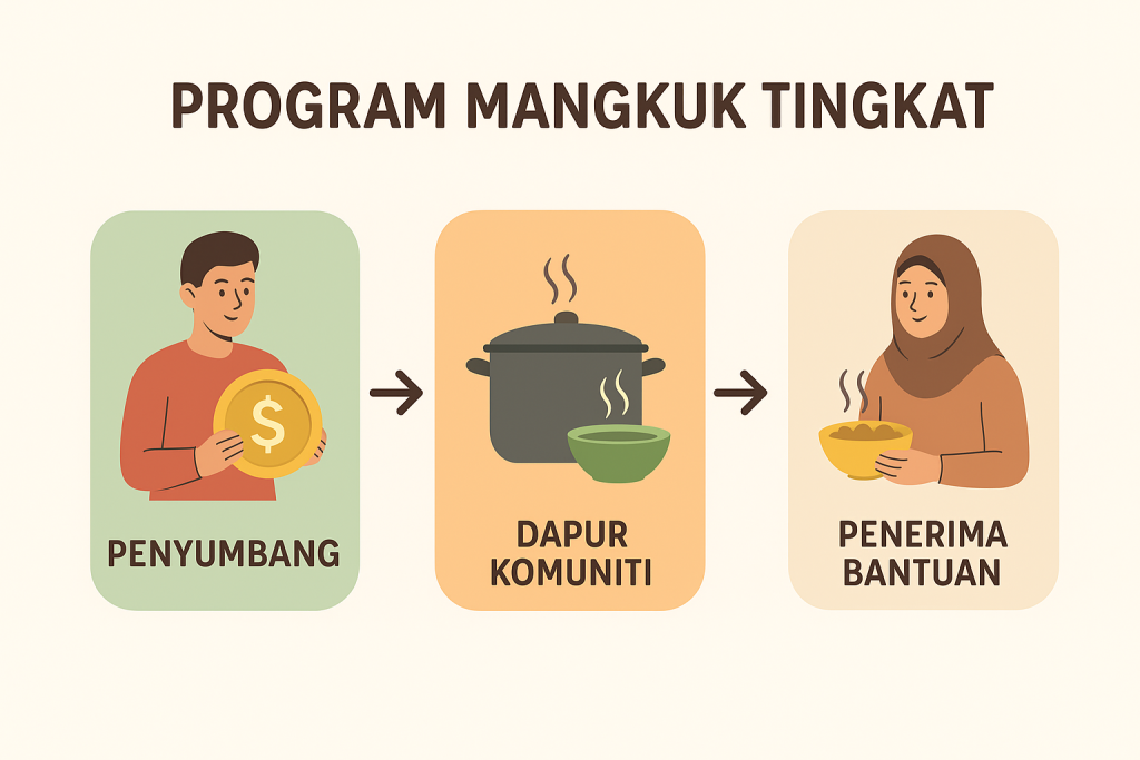 Program Mangkuk Tingkat adalah inisiatif Dato’ Hj Umardin bin Hj Abd Mutalib, Pengerusi Yayasan Rabitatul Islamiah Malaysia (YARIM) yang menghubungkan penyumbang, dapur komuniti, dan penerima bantuan. Dengan setiap sumbangan anda, sebuah dapur komuniti akan menyediakan hidangan berkhasiat untuk mereka yang memerlukan, setiap hari.